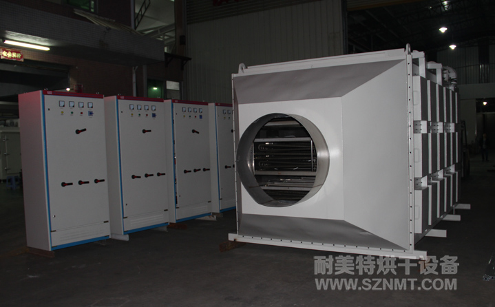 4、熱風(fēng)方式:冷空氣從進風(fēng)百葉窗吸入,經(jīng)過加熱管變成熱風(fēng),送至出風(fēng)口;